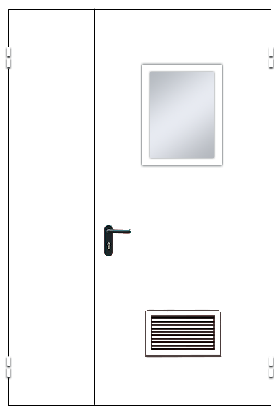 Дверь металлическая ДМ-2 с квадратным окном и вентиляционной решеткой